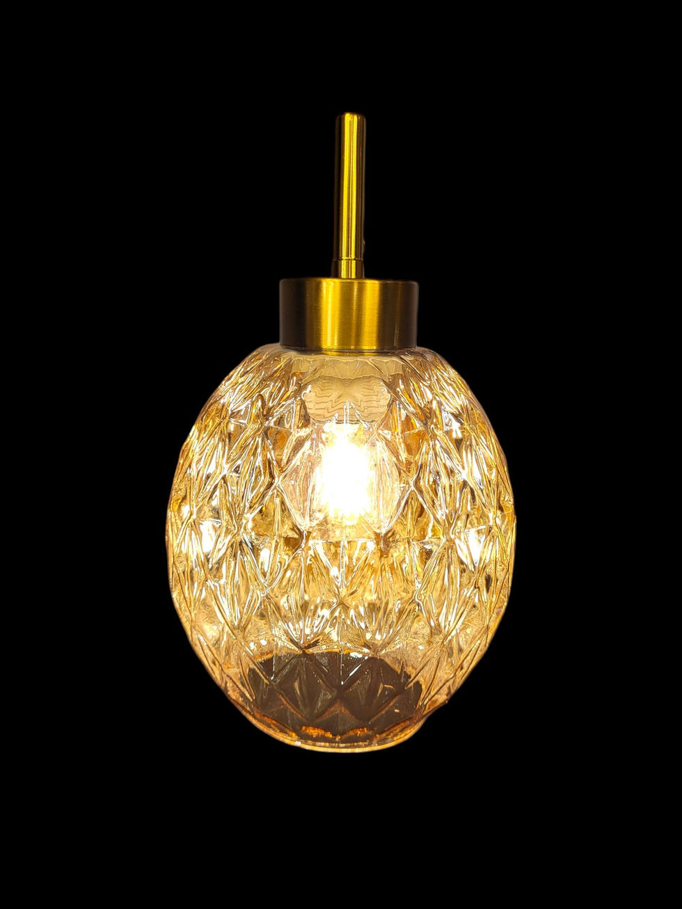 The Gold Diamond Wall Light features a stunning, faceted glass shade that sparkles like a precious gemstone. The black tint of the glass adds a touch of mystery and allure, while the gold metal frame provides a luxurious contrast. This wall light not only brightens your space but also elevates the decor with its elegant design.